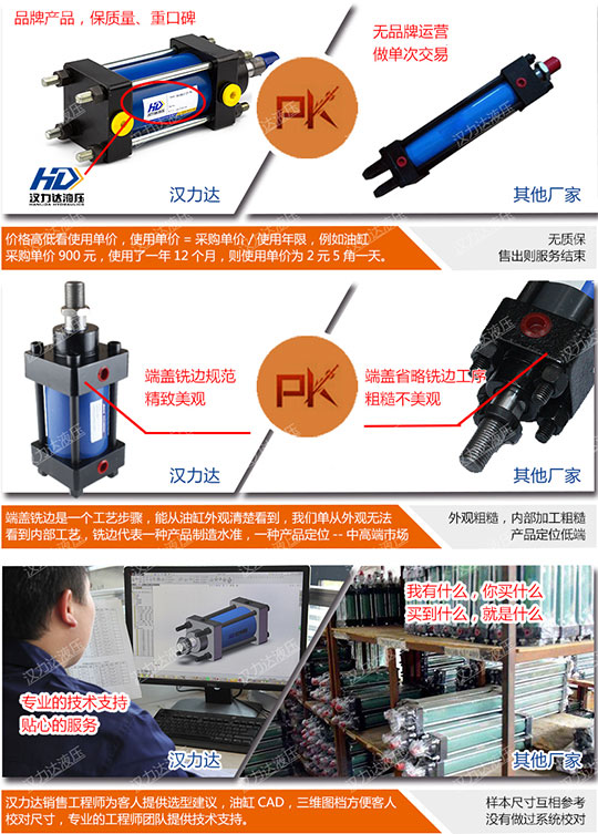 4.耐高溫性:可采用耐高溫密封材料,使油缸在180°C高溫條件下正常工作(客戶訂貨時需向本公司特殊說明訂購);