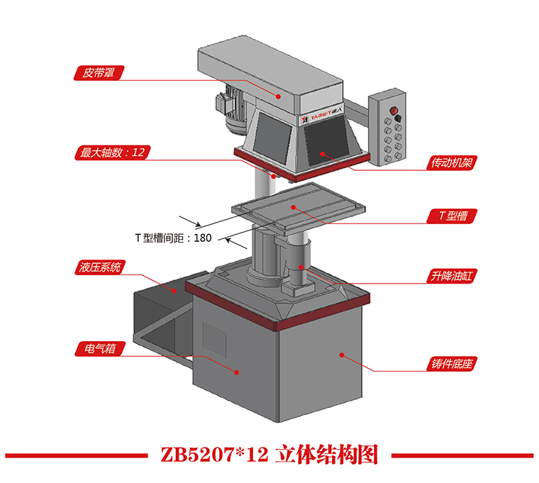 產品機型:ZB5207*12/6Y 可調式立式多軸鉆床
