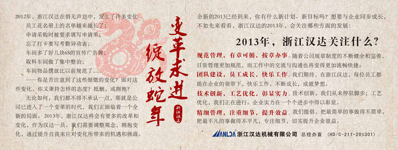 2012年,制造業(yè)危機四伏的一年,對浙江漢達來說,是抓住時機修煉內(nèi)功的一年。雖然還有很多的不完善,但我們一直在進步。