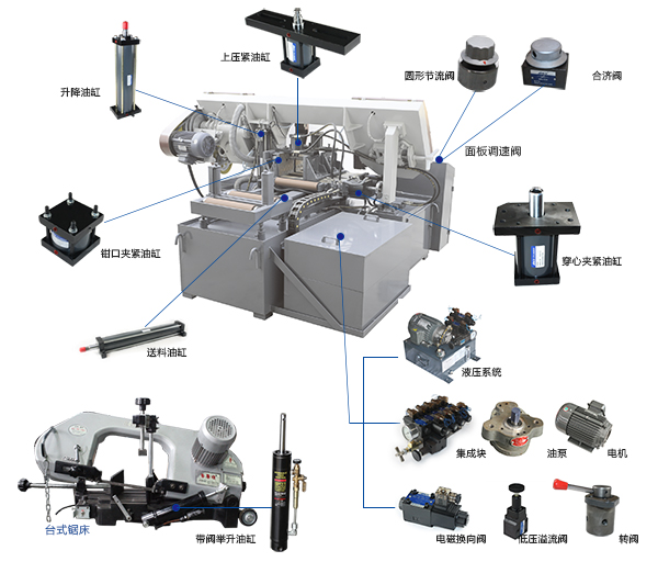 2014年山東最大的一家帶鋸床公司經朋友介紹,并查看了我們的公司網站等相關信息后,聯系到我們,希望我們能為他們設計定做帶鋸床液壓系統配件。因為他們公司帶鋸床主要以出口為主,質量要求高,但當地采購的液壓配件質量并不是很穩定,給他們售后也帶來了諸多不便。而他們主要的質量問題就出在升降油缸。帶鋸床液壓缸中,最關鍵的就是升降液壓缸,如材料或工藝沒達到要求或者安裝不注意出現問題,則升降機構會出現內泄露機器自動會下降現象,抖動現象等。缸筒材料若是未經過珩磨或滾壓處理的無縫鋼管,內壁光潔度不夠,會產生活塞、缸筒、密封件配合不良等各種問題產生。而壁厚很薄的缸筒,當液壓油溫高了,缸筒容易熱脹變形,導致漏油,使用壽命較低;活塞桿作為油缸主要原材料之一,行業標準鍍鉻層厚度是2~3絲,部分油缸廠家為降低成本,會使用1絲不到的活塞桿,短期看不到問題,但是大大降低油缸使用壽命。