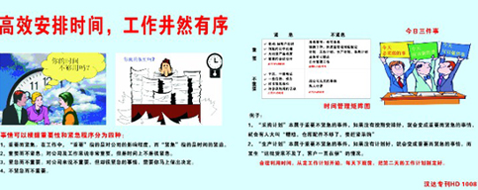 今年工廠的生意一直就很紅火,新老顧客訂單紛至沓來,公司一向以先保障老客戶訂單時(shí)間為原則來處理,而滿足不了一些新顧客的訂單時(shí)間,這是一件很遺憾的事情。為了服務(wù)好新老顧客的需求,工廠自身也在進(jìn)行反省和改進(jìn)。 8月份的黑板報(bào)主題就是:高效安排時(shí)間,工作井井然有序。相信隨著工廠管理水平的提升,員工時(shí)間觀念的加強(qiáng),生產(chǎn)效率能夠得到逐步得提升,來滿足到更多顧客的需求。事情按重要性和緊急程度可以分為: 1,重要而緊急