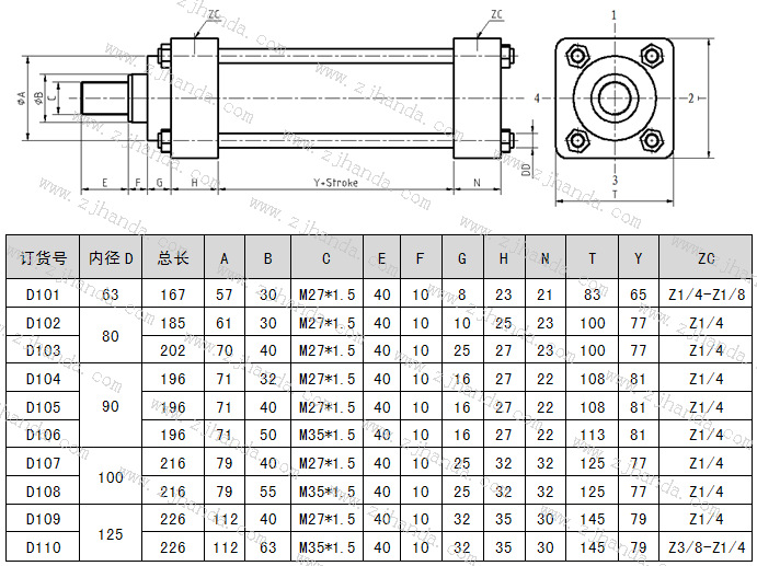 漢達技術人員結合市場需求,整理了低壓拉桿液壓缸的廠標,給客戶選擇,客戶按廠標選擇,方便快捷,交貨期又快。以下為安裝方式為四拉桿安裝的具體參數表。