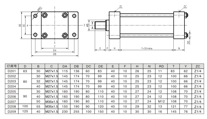 前法蘭安裝-低壓拉桿液壓缸尺寸圖及參數(shù)